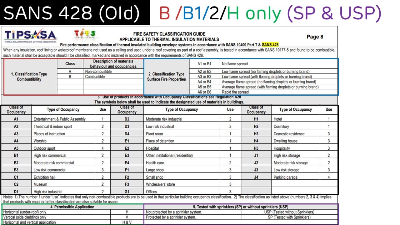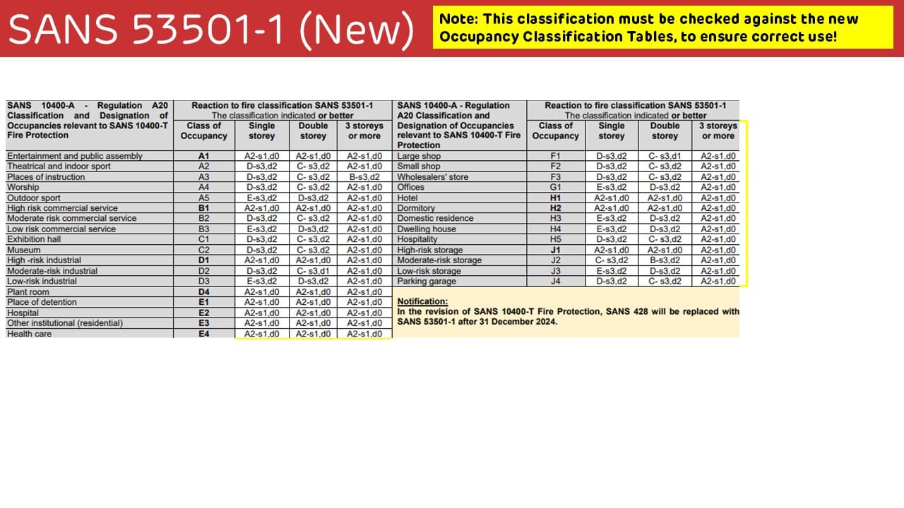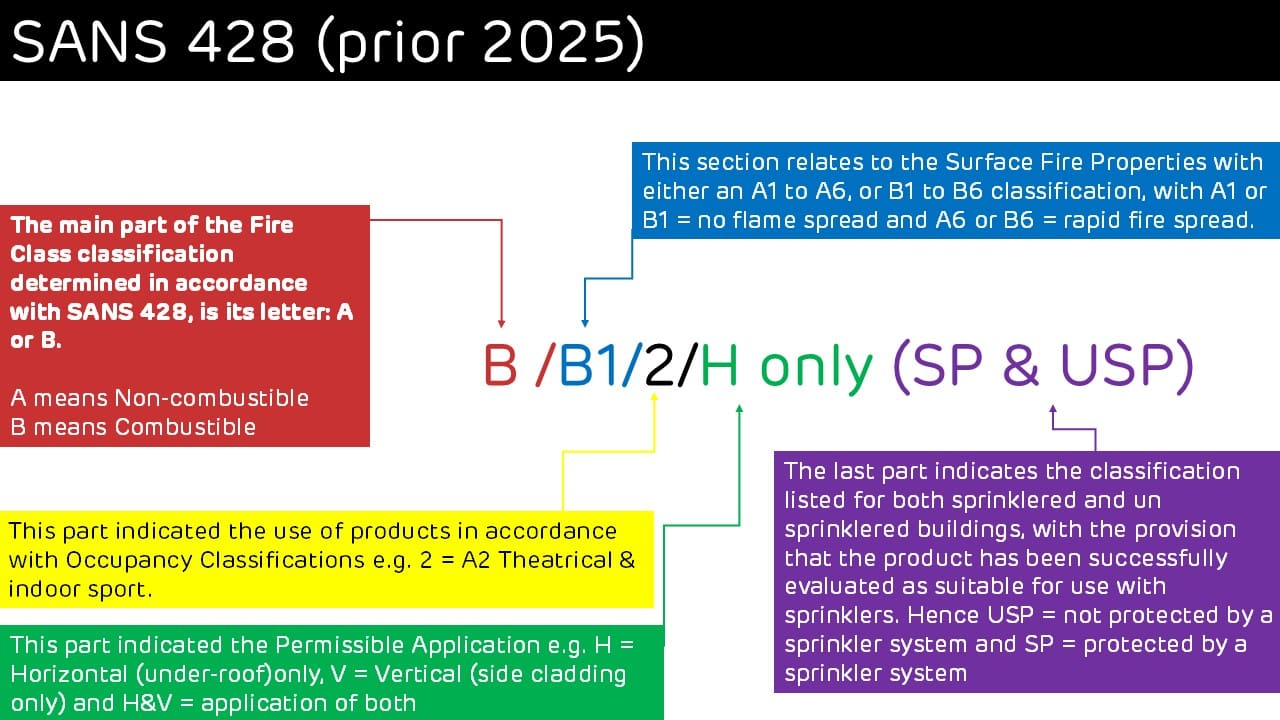 Fire Classification SANS 428 (prior 2025) vs SANS 53501-1